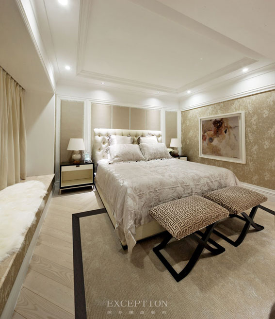 米色時尚,沉睡著都市里的含蓄優雅,白色衣柜,收藏那衣袂飄飄的珍貴年華。純白與米色的交會,使得整個空間清新淡雅,純凈浪漫里透著了幾分高貴溫暖。柔和的燈光,照亮著一個家,一座城,也照暖了那粉紅色的回憶。